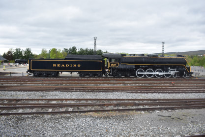 Reading Railroad 4-8-4 2124 built by Reading Shops in 1947. The first twenty T-1s were designed to haul freight, largely coal traffic, the last ten to haul passenger trains but, except for a few troop trains, mainly hauled freight. They worked until 1956 when all steam was retired on the Reading Railroad. The company kept only four steam locomotives: T-1s 2100, 2101, 2102 and 2124. In 1959, 2124 re-entered active service on the first of the "Iron Horse Rambles", also known as the "Reading Rambles", on 16th October, hauling sixteen passenger cars full of railfans from Wayne Junction to Shamokin. 2124 made a brief appearance in the opening scenes of the film "From the Terrace" with Joanne Woodward and Myrna Loy, shot at Jersey City, New Jersey. The Reading Company ran fifty-one "Iron Horse Rambles" excursions from 1959 to 1964, also utilising T-1s 2100 and 2102. The last excursion ran on 17th October 1964. However, 2124 was taken out of service after a trip in October 1961 and was then sold to F. Nelson Blount in 1962 and joined the Steamtown collection.