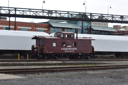 Delaware Lackawanna and Western caboose 889, later Conrail 19905 built by the railroad in 1952. It was donated to Steamtown by the Lackawanna and Wyoming Valley Chapter of the National Railway Historical Society in 1990.