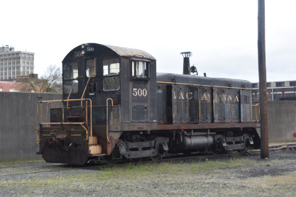 >Delaware Lackawanna and Western SW8 500, ex. Norfolk and Western 3132, nee Wabash 132 built by Electro-Motive Division in 1953. An interesting feature is that the trucks still had plain journal bearings rather than the more typical roller bearing installation.