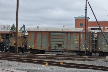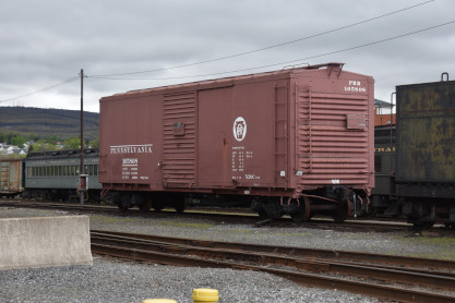 Pennsylvania Railroad box car 105808 built as a wooden boxcar in December 1919, original number not known. It was part of a group of wooden boxcars rebuilt into exterior steel cars in the Pennsylvania Railroad Shops between 1945-1950. After the rebuild, it was given the number 105808. In 1964, it was rebuilt a second time by Morrison Railway Supply and purchased from that company by the Vermont Railway, who renumbered it VTR 503. The boxcar was acquired by Nelson Blount when the Vermont Railway purchased larger boxcars. It was painted and lettered to PRR usage in 1991 and repainted in 1999.