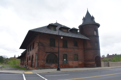 Central Railroad of New Jersey and New York Ontorio and Western freight station built in 1881 and was the western terminus of the Central Railroad of New Jersey line, 192 miles from its base of operations in Jersey City, New Jersey. Built in a Romanesque Revival style, it was at first an unusual instance of a freight terminal being more visually striking than its corresponding passenger terminal. The station was a site for trains from the south, from Allentown via Wilkes-Barre and Jim Thorpe. Through trains (such as the Philadelphia Flyer (Scranton-Allentown-Philadelphia) and the Scranton Flyer, making the northbound trip, or connections were available at Allentown for Jersey City and Philadelphia. When the railroad shut down its Pennsylvania operations in 1972, during bankruptcy proceedings, the terminal was closed by the Lehigh Valley Railroad, which took it over, and has remained unused since that time. It was added to the National Register of Historic Places in 1979.