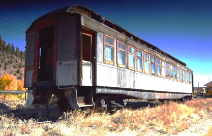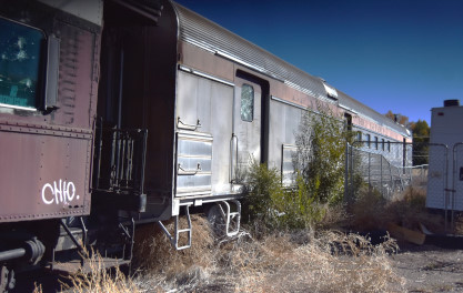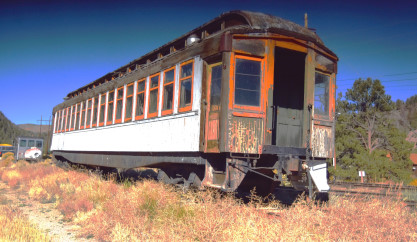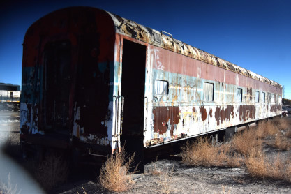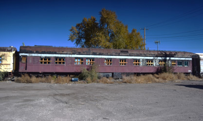 A narrow gauge coach 50 miles from the nearest extant narrow gauge line, found in the San Luis Central yard. We made our way to Del Norte and Elizabeth spotted passenger cars at the end of a street so we went to investigate.