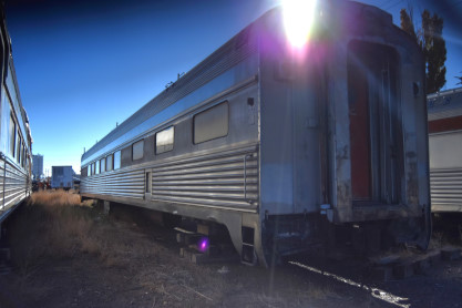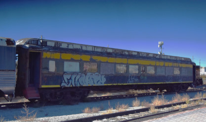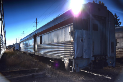 Union Pacific Mobile Police Unit 250, ex. Southern Pacific Mobile Police Unit 250, exx. Southern Pacific test car 250 1971, exxx. Southern Pacific 3104 1961, exxxx. Texas and New Orleans 302 1951, nee Southern Pacific baggage-dorm 3104 built by Budd in 1950. It was sold to a private owner in Fremont, Nebraska in 2003 then was purchased by Iowa Pacific in 2014. It was sold in 2022 to a Dark Sky Station.