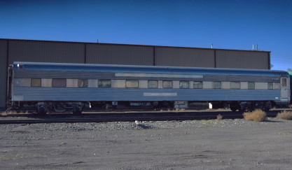 Iowa Pacific dining car 2014, ex. private owner in 1994, ex. Amtrak 8324 1971, ex. Southern Pacific diner-lounge 10411 in 1968, ex. Southern Pacific grill-lounge 10411 1957, nee Southern Pacific coffee shop-lounge 10411 built by Budd in 1950.