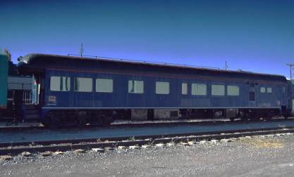 PPCX 800169 Morristown and Erie "Blue Ridge", ex. Ken Bitten in 1987, exx. Norfolk Southern 34, exxx. Norfolk and Western test car in 1980, exxxx. Norfolk and Western business car 101 1934, nee Norfolk and Western dining car 1010 built by American Car and Foundry in 1914.