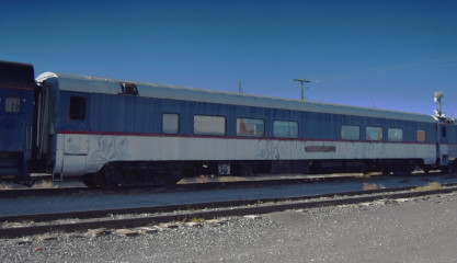 Iowa Pacific sleeping car 9119 2002, ex. San Luis and Rio Grande sleeping car 9119, exx. Memphis Transportation Museum "Winston Hoover" PPCX 800331, exxx. Amtrak 2361 1971, nee Santa Fe 4-4-2 sleeping car "Regal City" built by Pullman-Standard in 1948.