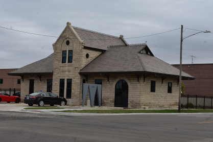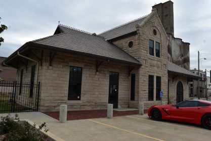 Missouri Pacific Salina station in 1887 which served freight and passengers until the Union depot was built in 1912. It is of a Richardsonian Romanesque design of rough-cut native limestone which is one of few in the region. The site contains the first geological survey benchmark and the structure was designated a local landmark in 1985.