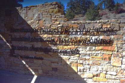 Writing on the wall. We drove the three miles to the parking lot on Chinney Rock.