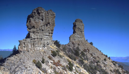 Contrasting GeologyThe dramatic geology of the monument stands in stark contrast to the majestic Ponderosa Pine forest and rolling savannah-like plains along the valley floor. The Piedra River cuts along the edge of Peterson Mesa in the northern portion of the monument. Steep cliffs and expanses of exposed sandstone and shale are evidence of the geologic era.