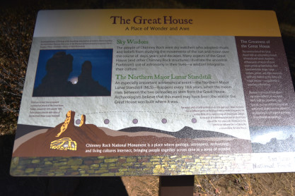 The Great House display board. We drove down the mountain and stopped at the Visitor Center for some purchases, after which Elizabeth drove us to Durango, where we had dinner at Denny's before checking into the Quailty Inn for night.