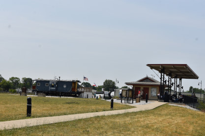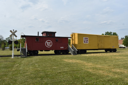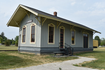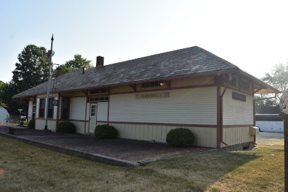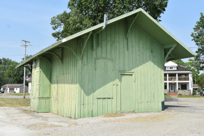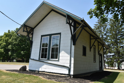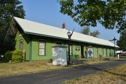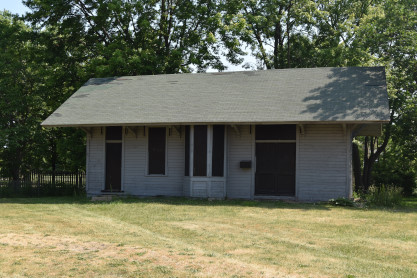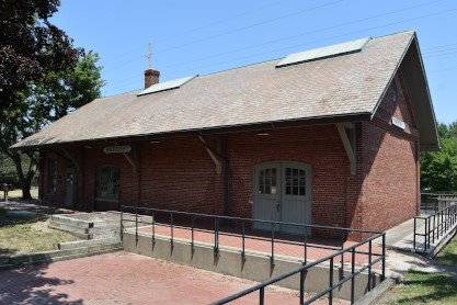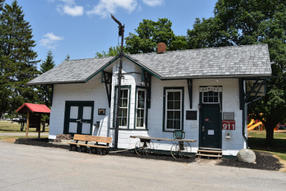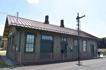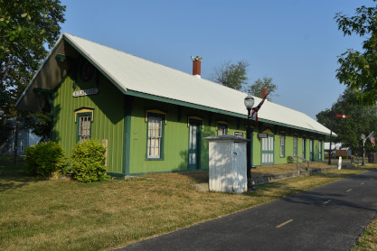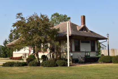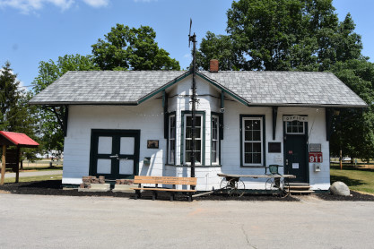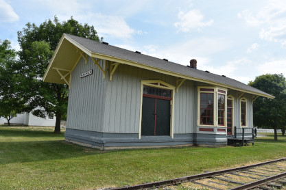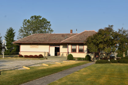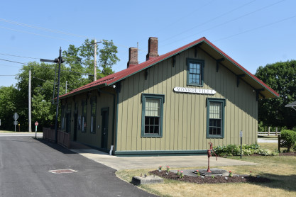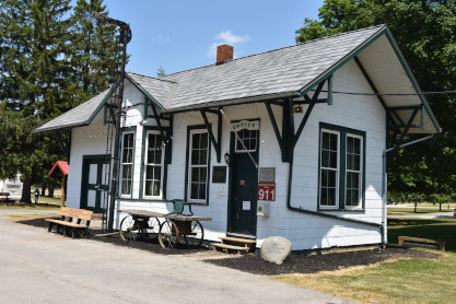 The Pittsburgh, Akron & Western Railroad (later Akron, Canton and Youngstown) station from Greenwich, built in 1982, which is nearly identical to the original one which was destroyed by fire in 1921. After closure in 1967, the depot was moved in 1972 and is now the park office.