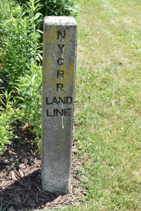 A Wabash railroad property pole. The bus then took all of us to Maumee.