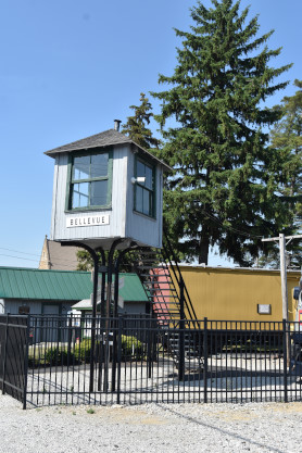 Bellevue Tower, which was originally maintained by the Pennsylvania Railroad and staffed by both PRR and Wheeling and Lake Erie. It was used to control movements in and out of the west end of Nickel Plate's Bellevue Yard. It controlled the W&LE crossing, the Pennsylvania Railroad crossing and also the New York Central Norwalk Branch crossing. While the New York Central line was removed in 1976 prior to Conrail's formation, the Wheeling and Lake Erie diamonds were removed in the 1980's in favor of the Brewster Connection.