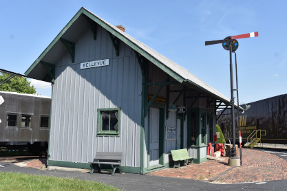 Wheeling and Lake Erie Curtice station built in 1882 and moved from Curtice, Ohio in Ottawa County. It closed in 1972 and was moved to Bellevue in 1976. Bellevue was, and is, a major railroad centre with the Lake Shore and Michigan Southern, Nickel Plate, Pennsylvania Railroad and Wheeling and Lake Erie running through. The Lake Shore Electric also served the community.