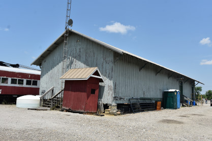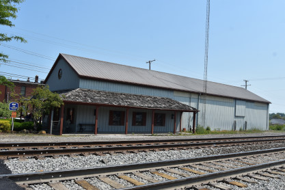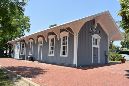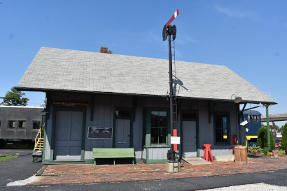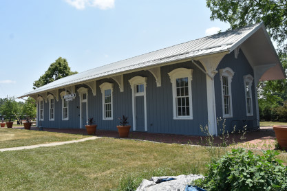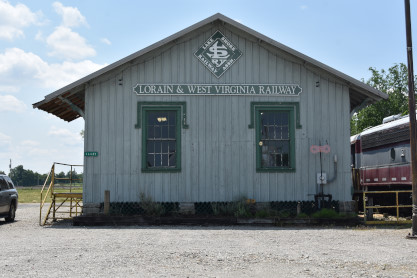Lorain and West Virginia station built in 1853 which is from Oberlin and was the original Toledo, Norwalk and Cleveland Railroad building. That railway began operations in northern Ohio and a series of mergers in 1869 resulted in the TN&C becoming part of the Lake Shore & Michigan Southern. Oral tradition has it that the contractor found a 1853 penny placed in one of the rafters of this building when it was disassembled for moving, which leads us to believe that at least part of the building was constructed at that time.