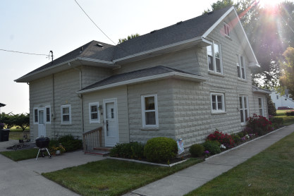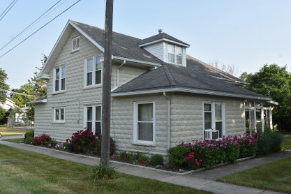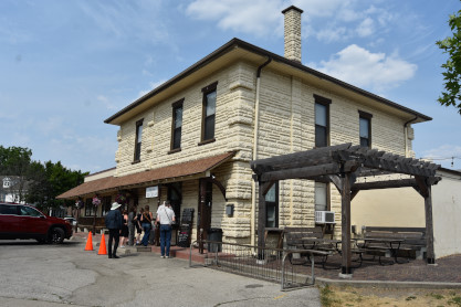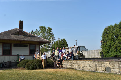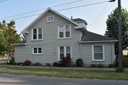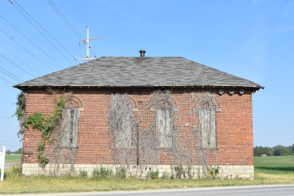 Toledo, Fostoria and Finldlay Railway concrete block depot built in 1877. It closed in 1968, dismantled and rebuilt as a house. Mr. Fahle made a couple of trips to this station with his golf cart while the others had a nice morning walk.