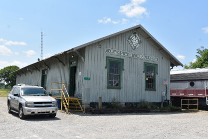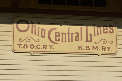 Ohio Central Lines -- Toledo and Ohio Central Railroad and Kanawha and Michigan -- sign on the side of the depot. There was another station within walking distance but as my knees were aching, I, along with another fellow conventioneer, rode to it in Mr. Fahle's golf cart.
