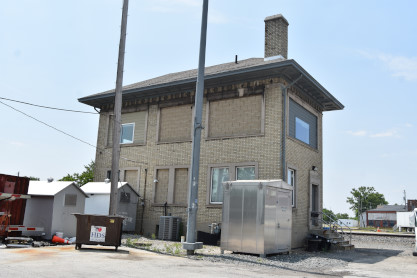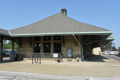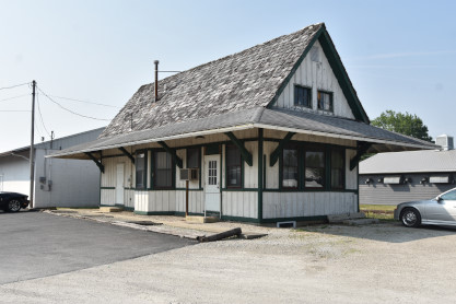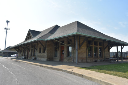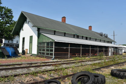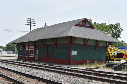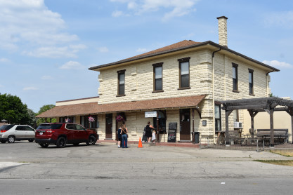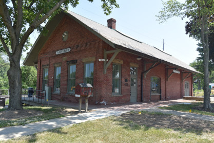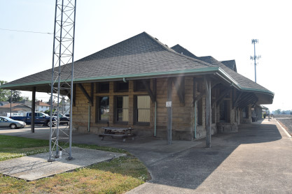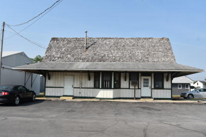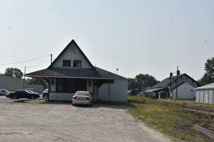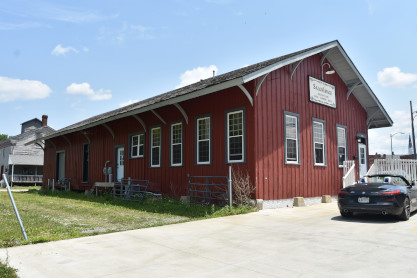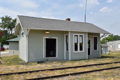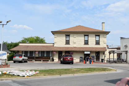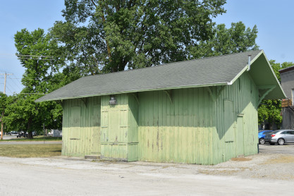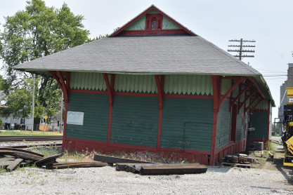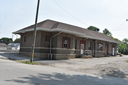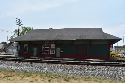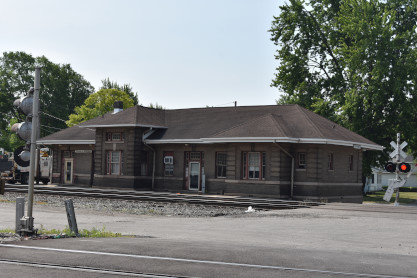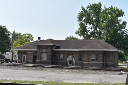 Lake Shore and Michigan Southern station built in 1871. A previous, smaller depot sat on this site prior to 1871. Although built by the LS&MS, this station also served the Lake Erie and Western, according to the 1914 Sanborn Fire Insurance map. The LE&W had a spur that pulled up to the west side of the building. It has now become Depot Pizza & Bar.