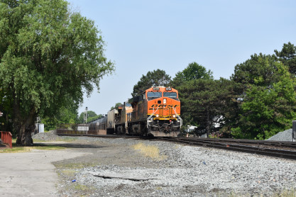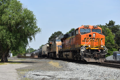 CSX BNSF 6734 West with Union Pacific C45ACCTE 5255 in the consist.