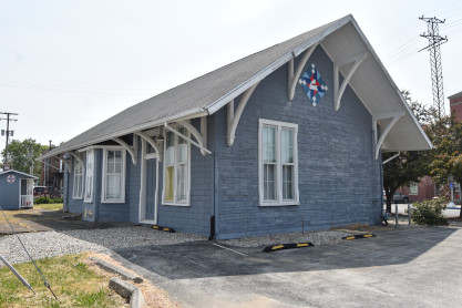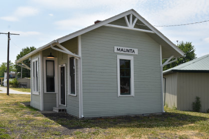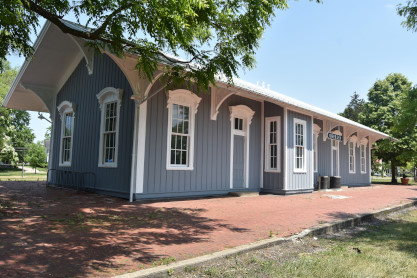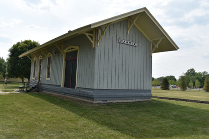 Toledo, St. Louis and Western (later Wabash) Maumee station built in 1880. After closure, it found early use by a local lumberyard then the Maumee Valley Historical Society moved it to their grounds at the Wolcott House Museum in 1971 and restored it.