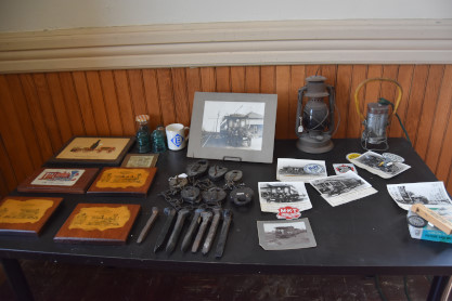 Mark Camp had contacted Dale Fahle and he and his wife, who live next door, welcomed us all and we explored the interior, which was a mixture of railway and area memorabelia.