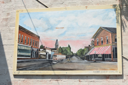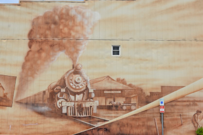 There were several murals on the sides of buildings as we walked around and this one had an interurban railway theme.