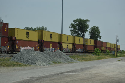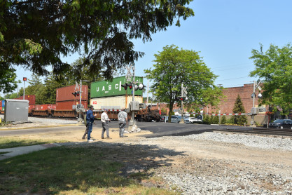 A freight train was heard on the approach and we and walked to the grade crossing.