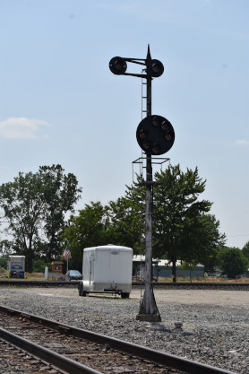 Baltimore and Ohio signals protects the southbound Detroit, Toledo and Ironton trains. The passenger station was demolished in August 2022 after being closed in the 1990's.