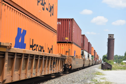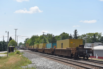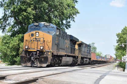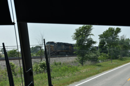 The unidentified CSX train at the grade crossing on the way to our next stop at Deshler.