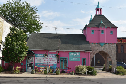 Nickel Plate Railroad box car 7140, which is probably not its original number. From here the bus took us to Mark Camp's Boyd's Retro Candy Store which his wife owns.