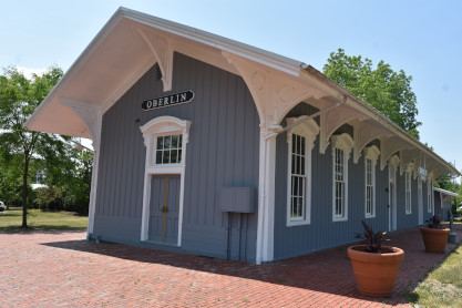 Lake Shore and Michigan Southern Oberlin station built in 1889 and is on the National Register of Historic Places. Passenger service was discontinued in 1949 and while the freight station was moved to Welalington, the passenger depot was restored on site in the 1970's and serves as a community centre.