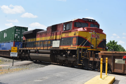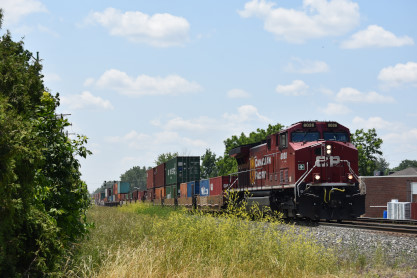 CSX Canadian Pacific AC4400CWM 8028 East with merger partner Kansas City Southern SD70ACe 4123 in the consist.