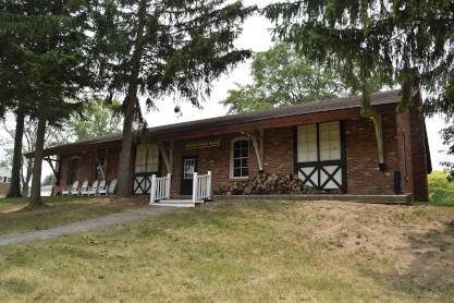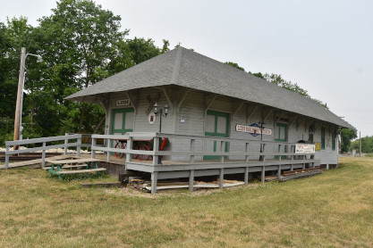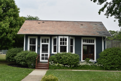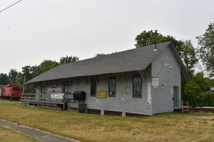 The Cincinnati, Hamilton and Dayton Railway Perrysburg station which was moved from its original location at the corner of West 3rd Street and Louisiana Avenue in 1971. Now just the passenger end remains at the Carranor Hunt & Polo Club.