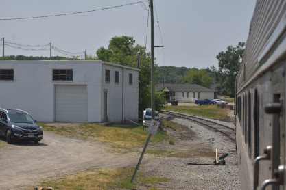 Curving our way to our Hillsdale stop. Since the position of the train meant our car, "Franklin Inn", stopped on a switch, everyone had to walk through two cars to detrain.