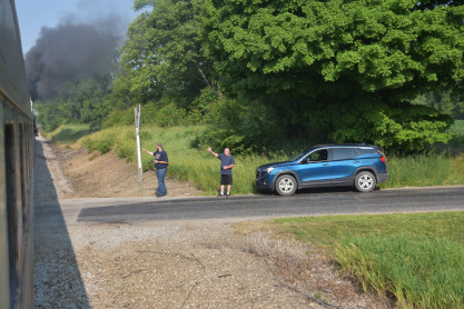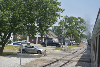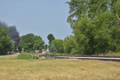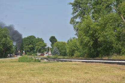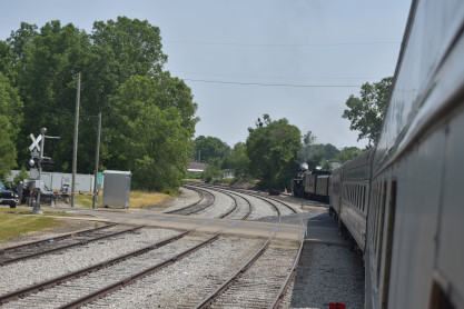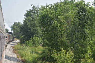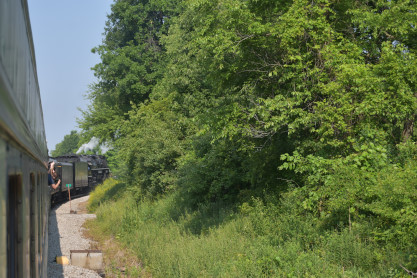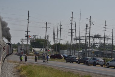 The trip around the wye is now complete. Once on the nove again, it was announced that there would be a photo runby at the state line at Ray, Indiana.