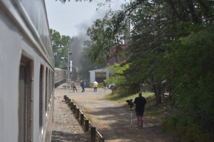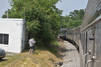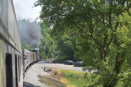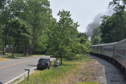 I then gathered the consist details as Elizabeth took her pictures. The consist was Nickel Plate Road 2-8-4 765, extra tender RPCX 707, Tool Car 701 "Glen Brendel", Power Car FWRX 3679, RPCX snack car 367 "John D. Emery", MOTX coach 147 "Norristown Inn", RPCX coach 148 "Collinswood Inn", RPCX 42 "Franklin Inn", RPCX 194 Chicago, Burlington and Quincy dome coach 194 "Silver Diner", RPCX 3128 "Paul Revere", RPCX 106 New York Central "Woodland Stream" and observation car "Roanoke".