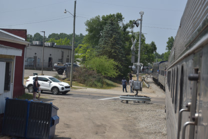 Lake Shore and Michigan Southern Hillsdale station built in 1881. We walked into town and got ice cream at Coneys and Shakes during the long layover here. We returned and visited the Fort Wayne Railroad Historical Society's tent and purchased T-shirts, magnets and two steam engine pins.