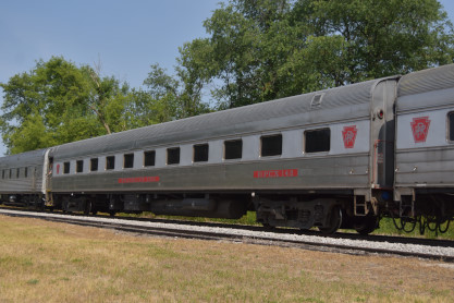 RPCX coach 148 "Collinsville Inn", ex. Cuyahoga Valley Railroad NRHX 148, ex. Maryland Area Regional Commuter 148, exx. Southeast Michigan Transportation Authority 108 "Hazel Park", exxx. Penn Central 1508, nee Pennsylvania Railroad 21 roomette sleeping car 8254 built by Budd Company in 1949. It operated through Fort Wayne, Indiana during its original careers. Converted to a traditional coach in 1963 for the World's Fair in New York City, 148 wound its way through commuter train service until were eventually obtained and renovated by the National Railway Historical Society (Washington DC Chapter) in 2008. It operated in occasional rail excursion service and was in limited seasonal use when purchased in mid-2022.