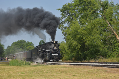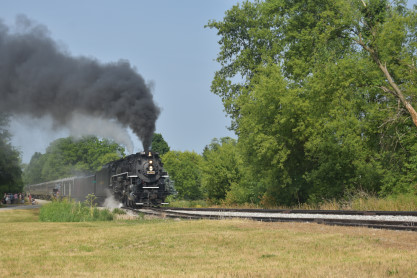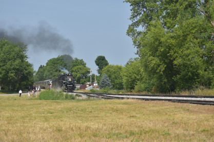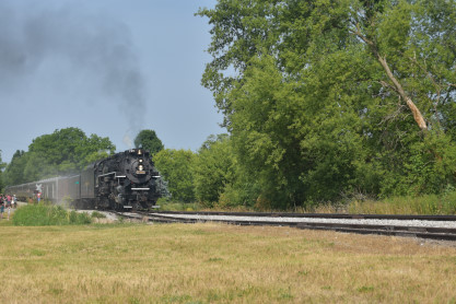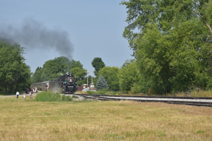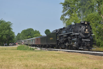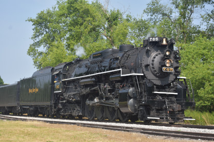 Nickel Plate Road 765 waiting on passengers to return. The train departed late and we would all ride around the wye at Hillsdale.