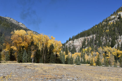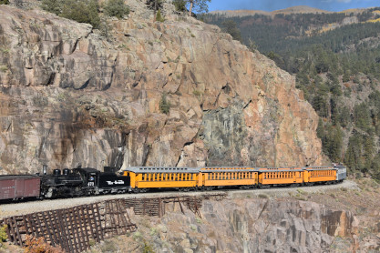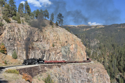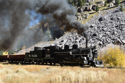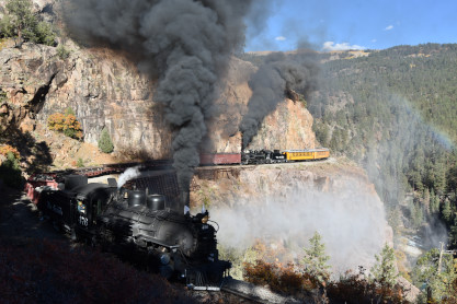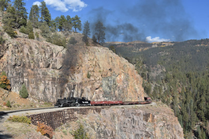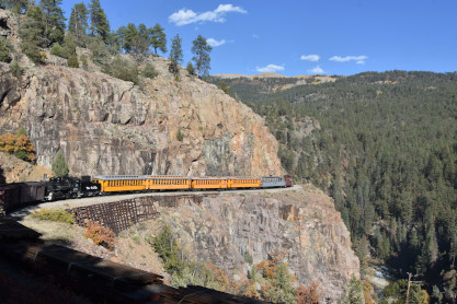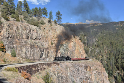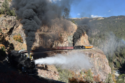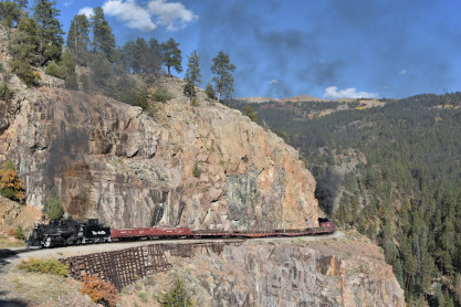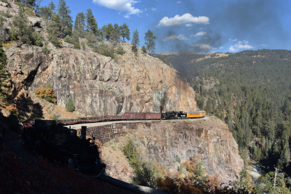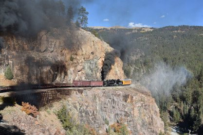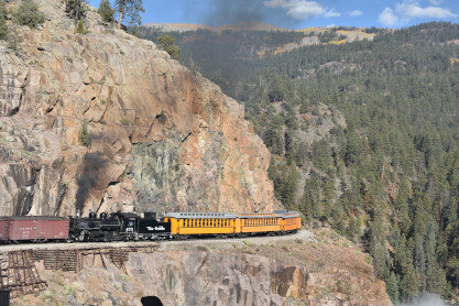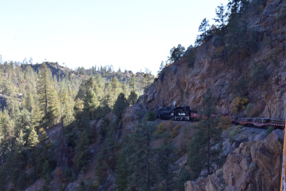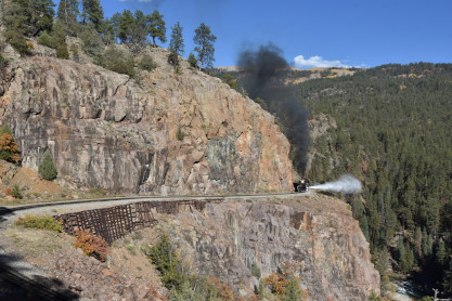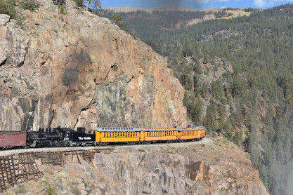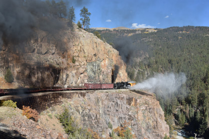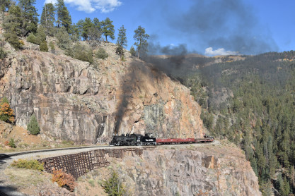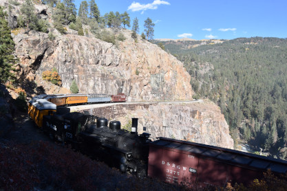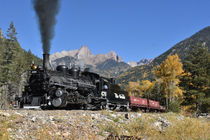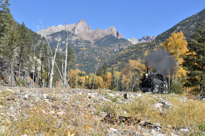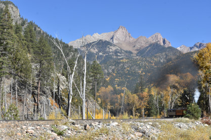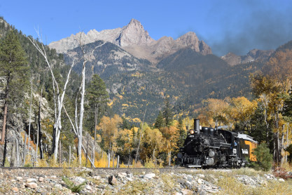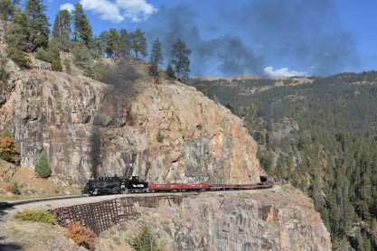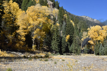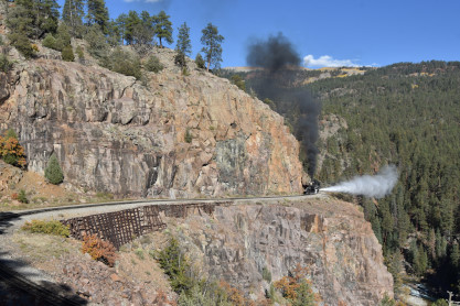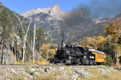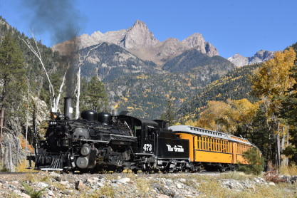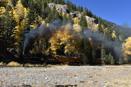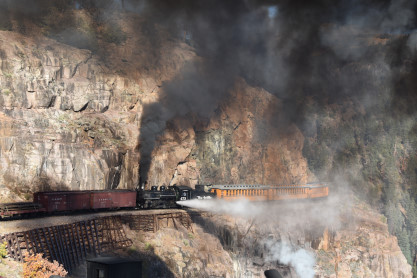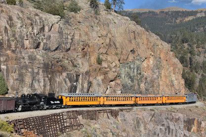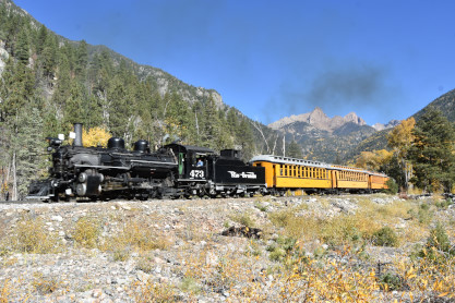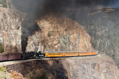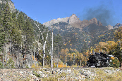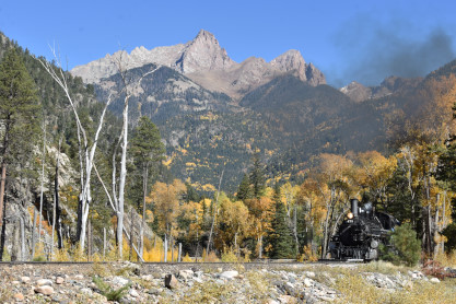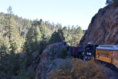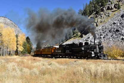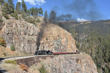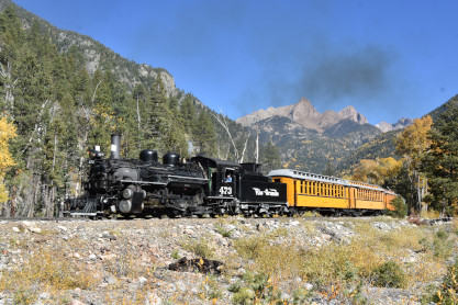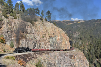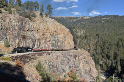 Elizabeth and I arose and following our Internet duties, walked over to the Elevated Coffee Company for breakfast as this was the end of the season and no restaurants were open for breakfast. After that, we returned to our room at the Avon Hotel before checking out and walked the two blocks north to the freight train, loaded our luggage into the box car then waited to board the train. Once all the charter participants were aboard, we left for the Silverton station for several photo runbys.