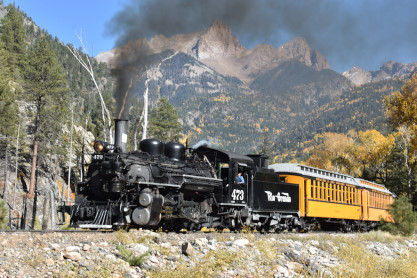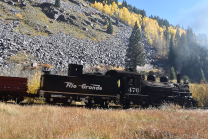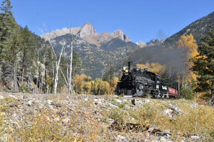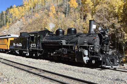Denver and Rio Grande Western 4-6-0 168 built by Baldwin in 1883. It was on display in Antlers Park in Colorado Springs from 1938 to 2015 then was leased to the Cumbres and Toltec Scenic Railroad for forty-five years and was fully restored.