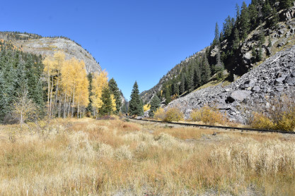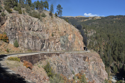 10/18/2023 Elizabeth and I arose and following our Internet duties, checked out from the Comfort Inn in Farmington and went to the Village Inn and had an excellent breakfast. I then drove east down US Highway 24 to Dulce then took New Mexico 17, which turned into Colorado 17 to Antonito, where we parked in the Cumbres and Toltec Scenic Railroad parking lot.