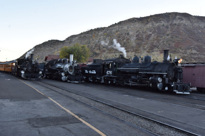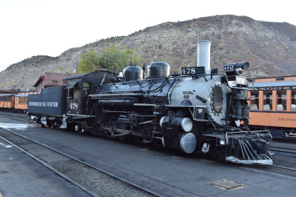 Durango and Silverton K28 2-8-2 478, nee Denver and Rio Grande Western 478, built by the American Locomotive Company in 1923. It was restored to operation in 1981, then taken out of service indefinitely in February 2016. It is temporarily on display in the Durango and Silverton Roundhouse museum, awaiting possible overhaul and will possibly be converted to burn oil after Durango and Silverton 481 and 486 are both converted.