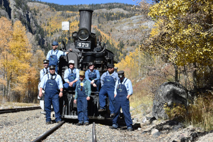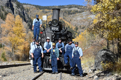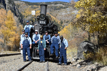 The crew of both trains posed in front of Durango and Silverton K28 473. Anyone who wanted pictures of the cab of 473 was welcome to climb aboard and I was the first person who did so.