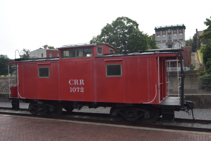 Clinchfield Railroad center cupola caboose 1072 built by the railroad is on display at the station.