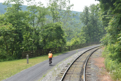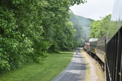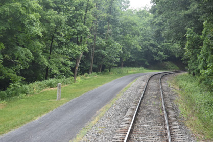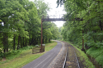 The trip to the old Western Maryland signal bridge. The trail that parallels the track is part of the Great Allegheny Passage which links up to the Chesapeake and Ohio Canal Towpath in Cumberland. Hikers and bicyclists can enjoy a continuous, off-road trail experience for 334 miles from Pittsburgh to Washington, D.C. Starting in Cumberland, the Great Allegheny Passage follows the route of the historic Western Maryland Railway as it makes a gradual ascent to the Eastern Continental Divide.