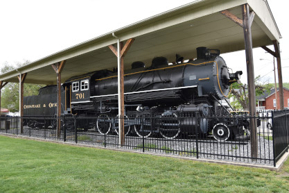 Most of the G-5s remained on the Hocking Valley's central and southeastern Ohio lines under the C&O, but 701 was transferred to Clifton Forge in 1940 to spend the next decade and more hauling passenger trains from Covington to Hot Springs. During its operating life, 701 garnered two nicknames: "Tojo" because it transported Japanese prisoners of war to internment camps in Hot Springs and "The Merry Widow", apparently because it gave the impression of happily steaming along alone on the Hot Springs branch line. It was retired by the C&O, donated to the City of Covington in 1954 and underwent a cosmetic restoration in 2015.
