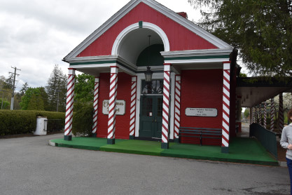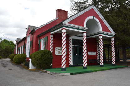 Control of the station passed to the Greenbrier in the 1980's to 1990's and the resort converted the building to a Christmas store and gift shop. It is still decorated as such, with a red exterior with white accents. The entrance features a portico supported by pillars with red and white "candy cane" striping. This year-round holiday décor gives this station one of the most distinctive looks in the Amtrak national system.