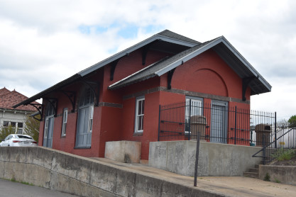 Lewisburg & Ronceverte Railroad Lewisburg station built in 1910. This is the only craftsman-style building remaining on the railroad line. The first year of its opening, more than 65,000 passengers passed through its doors. Passenger service ceased in 1974 and the original passenger canopy and baggage building have recently been restored.