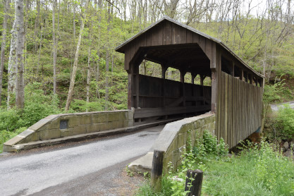 Hokes Mill covered bridge built about 1898 which spans Second Creek, a tributary of the Greenbrier River and is a 82-foot-long "long truss". The bridge provided access to Hokes Mill and is one of two remaining covered bridges in Greenbrier County; the other is the Herns Mill Covered Bridge. We made our ways to Lewisburg.